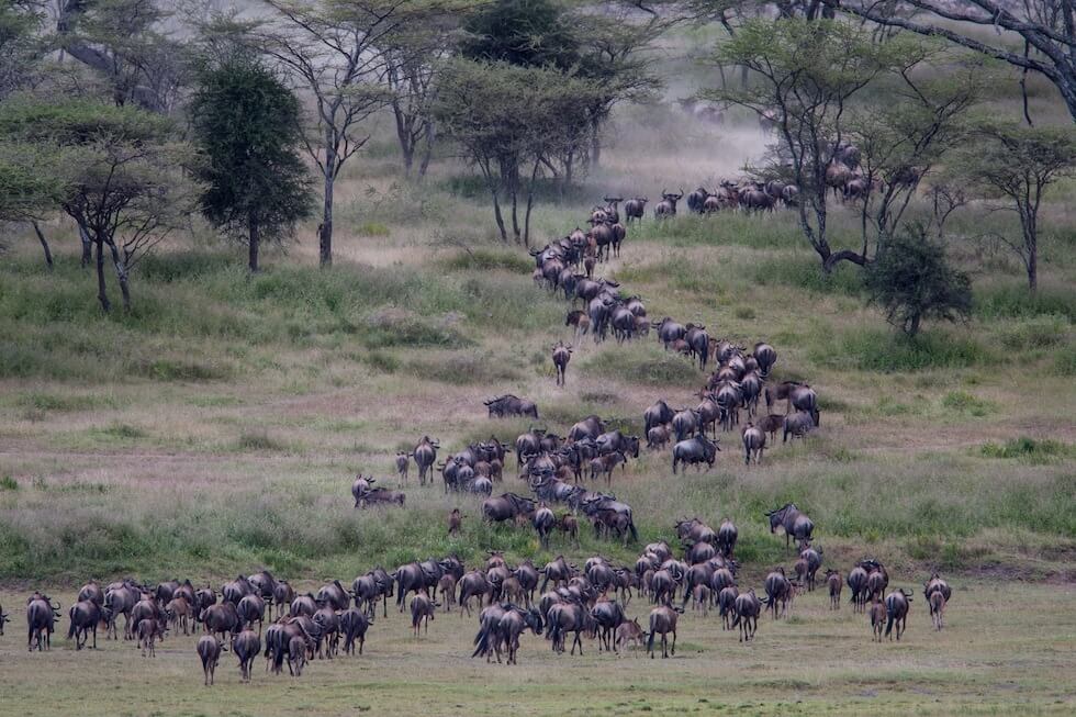 Witness the awe-inspiring spectacle of the Great Migration, where millions of wildebeests and zebras