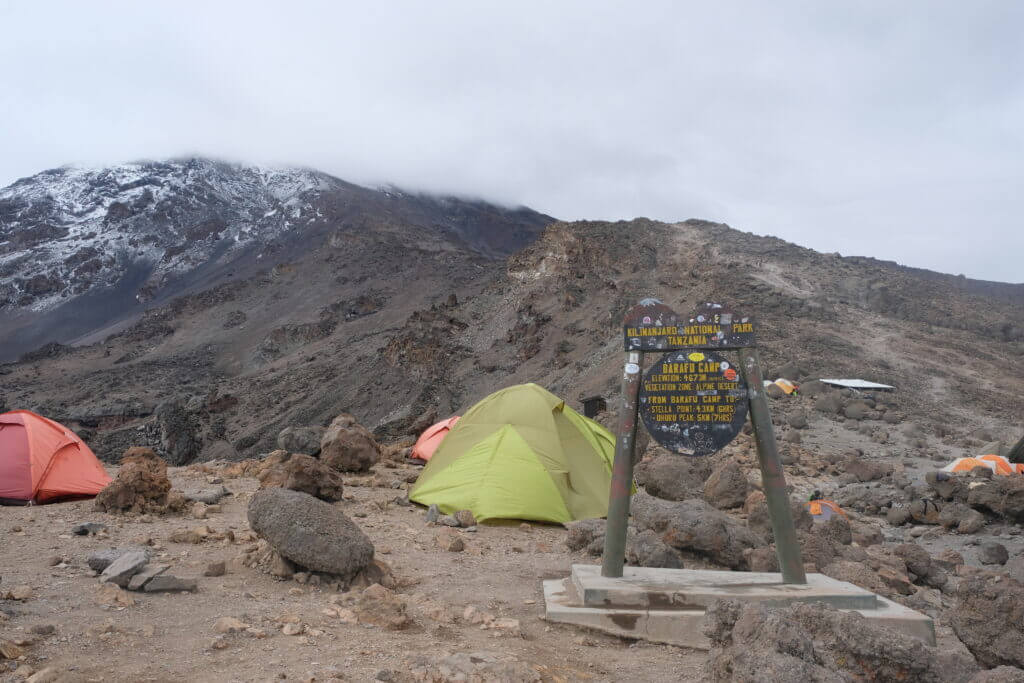 You continue to Barafu Camp, the final camp before the summit. After an early dinner, you rest and prepare for the midnight summit attempt.
