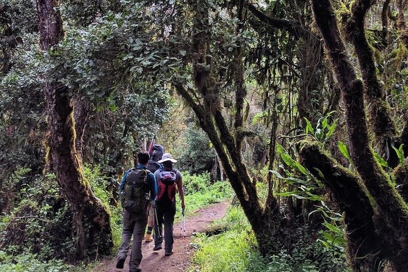 After breakfast, drive to Umbwe Gate for registration before starting the trek through dense rainforest. The trail is steep and narrow, climbing steadily through tall trees, hanging moss, and thick undergrowth. The quiet forest setting gives the route a remote feel from the very first day. You reach Umbwe Camp in the afternoon, where you rest and acclimatize.